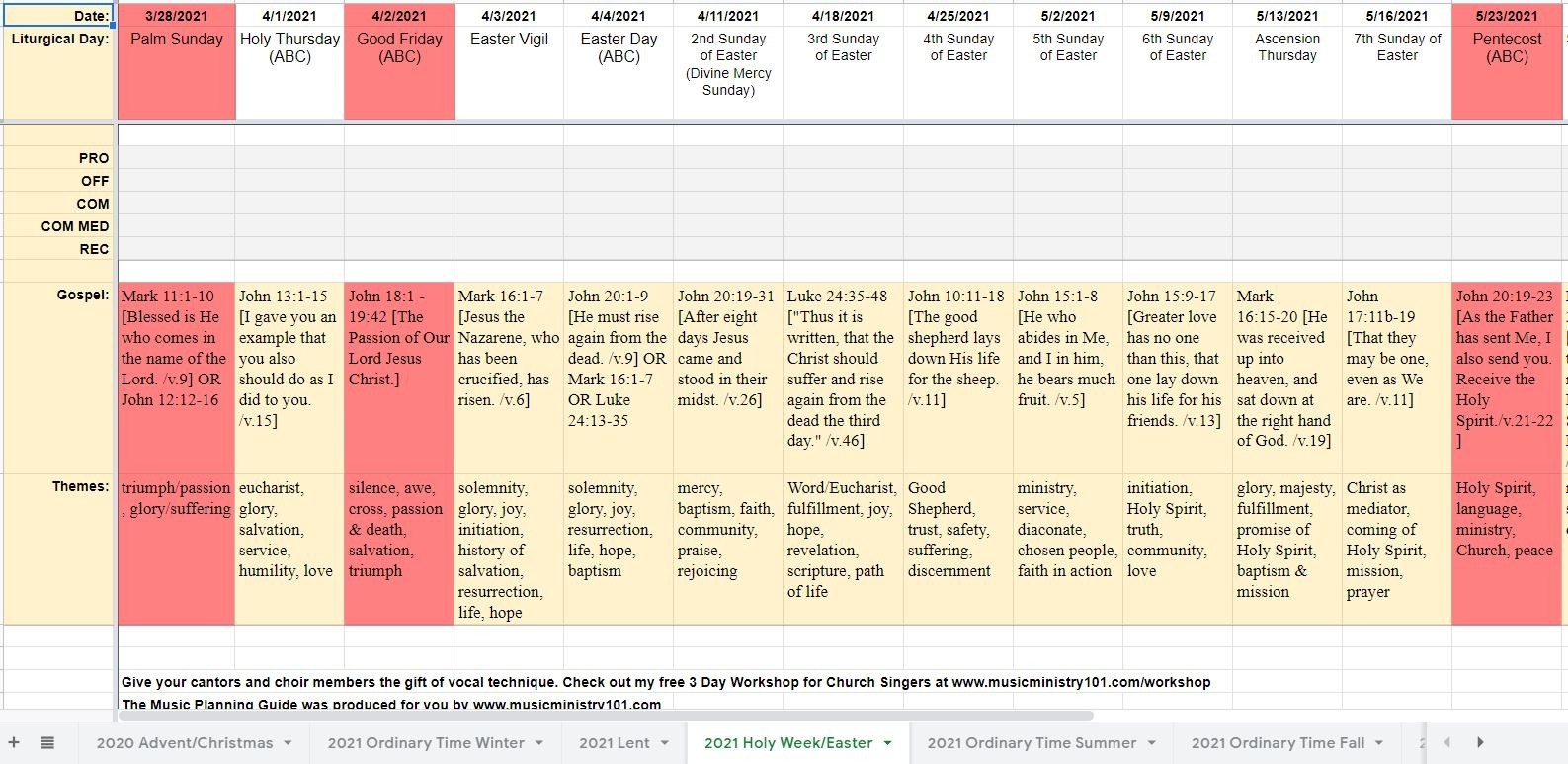Plan the selections on Google Drive and simply share the guide with others in your music ministry.